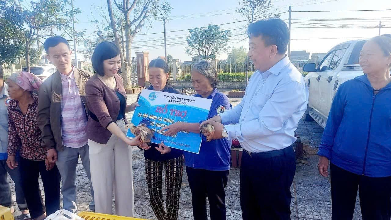 Theo đó, đợt này xã Tùng Lộc tiếp tục trao 24 mô hình gà giống cho hộ nghèo, cận nghèo, khuyết tật, mỗi mô hình 70 con gà giống với tổng số gà được trao 1680 con.