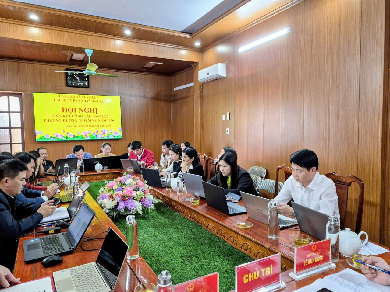 Sáng 05 /1, Chi bộ UBND xã Tùng Lộc tổ chức tổng kết công tác xây dựng Đảng năm 2025, triển khai nhiệm vụ năm 2026. Đồng chí Lê Anh Ngọc, Chủ tịch UBND xã, Bí thư Chi bộ UBND xã; đồng chí Nguyễn Tuấn Lĩnh, Phó Chủ tịch UBND xã, Phó Bí thư Chi bộ UBND xã chủ trì hội nghị.