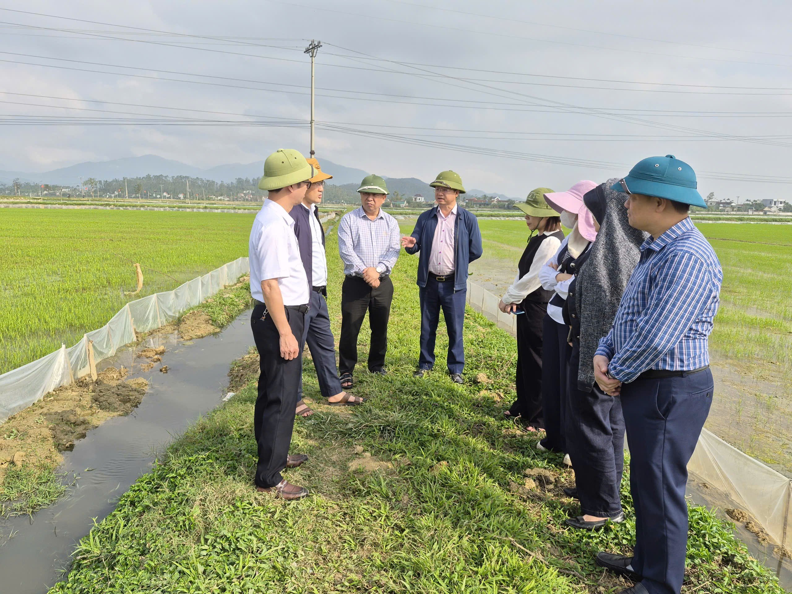 Đoàn công tác đã đến kiểm tra mô hình ứng dụng kỹ thuật trong hệ thống thâm canh tổng hợp (SRI) để sản xuất lúa gắn kết với tiêu thụ sản phẩm, tại cánh đồng Đầy, thôn Liên Tài Năng, xã Tùng Lộc với diện tích sản xuất lúa 20 ha.
