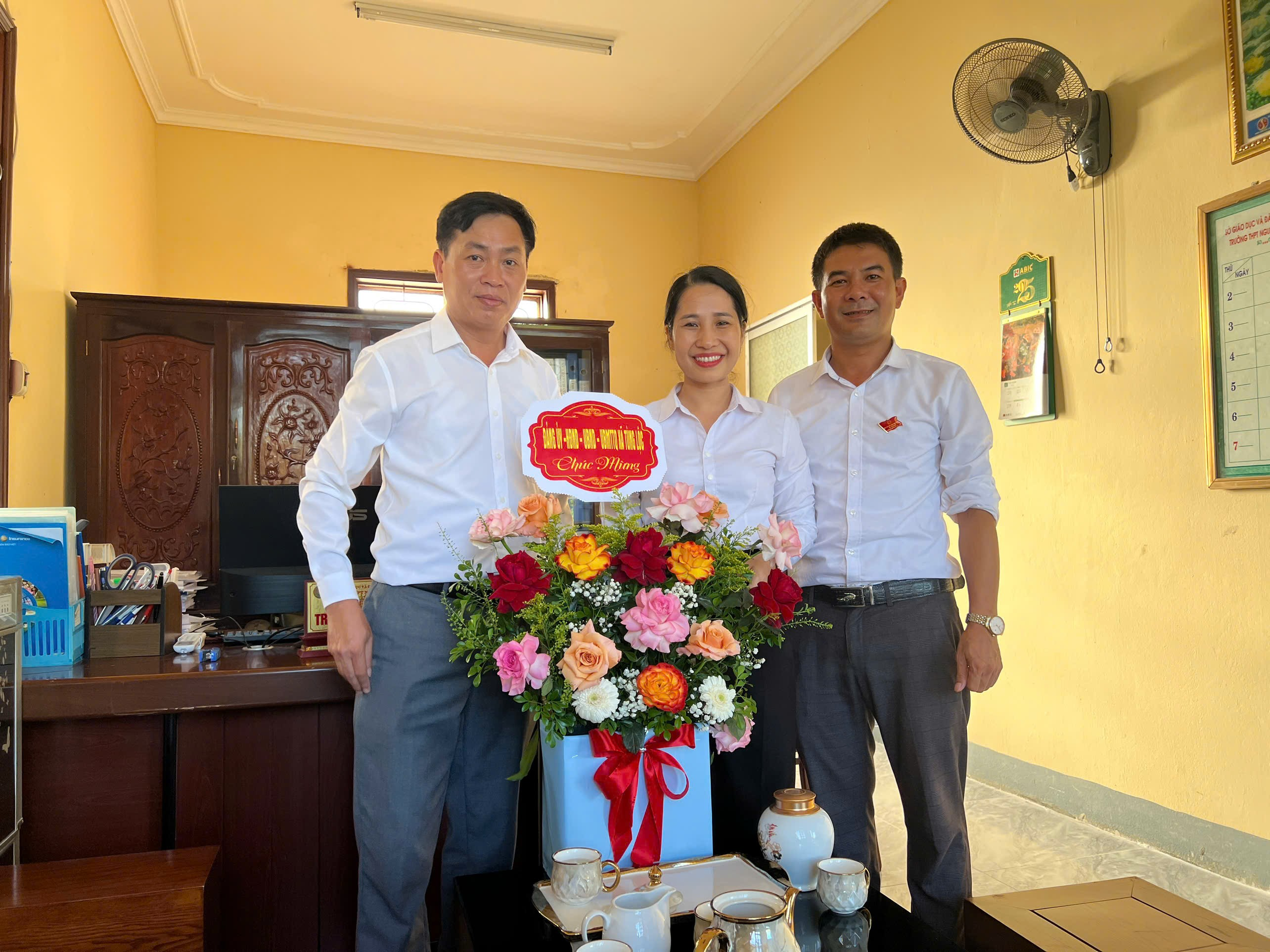 Đoàn công tác Thường trực Đảng ủy tặng hoa chúc mừng tập thể cán bộ giáo viên trường THPT Nghèn, THPT Nguyễn Văn Trổi, THPT Nguyễn Đổng Chi và các trường MN tư thục trên địa bàn.