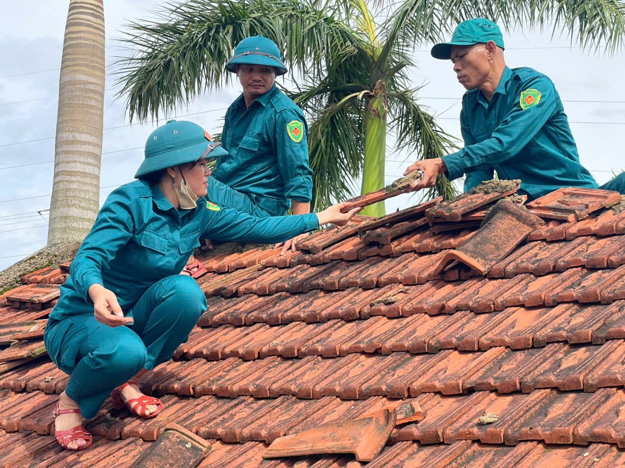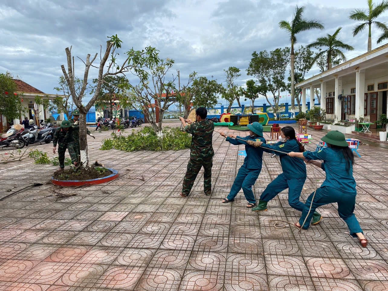 Trong ngày hôm nay, các cán bộ, chiến sĩ dân quân xã phối hợp lực lượng quân sự PTKV 1 đã tích cực tham gia khắc phục cây cối bị ngã, lợp lại các mái ngói bị tốc, vận chuyển bàn ghế, vệ sinh sân trường, phòng học, sửa chữa lại mái che, hàng rào… Nhờ tinh thần xung kích, trách nhiệm và đoàn kết, môi trường học tập ở các trường đã được khôi phục nhanh chóng, sạch sẽ, an toàn, sẵn sàng đón học sinh trở lại học tập.