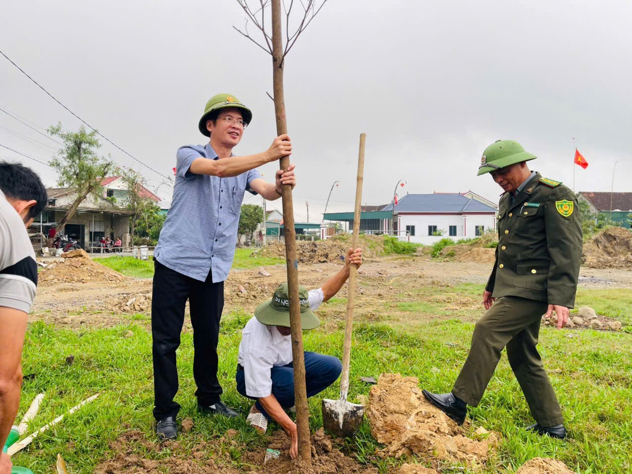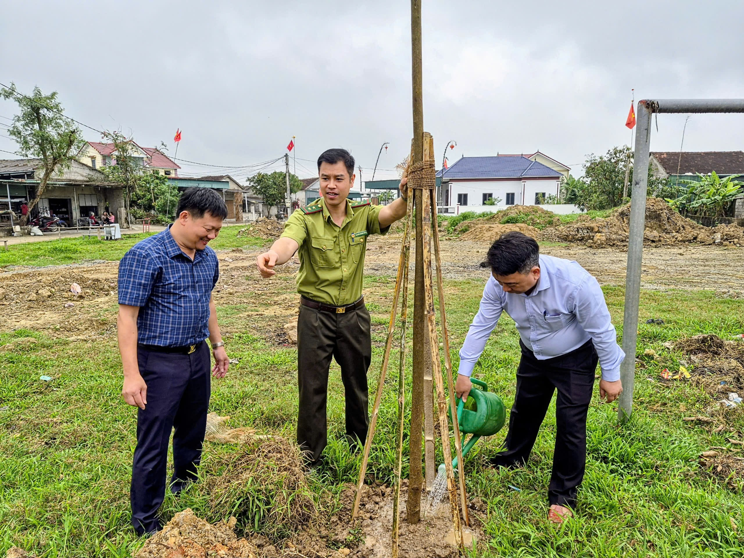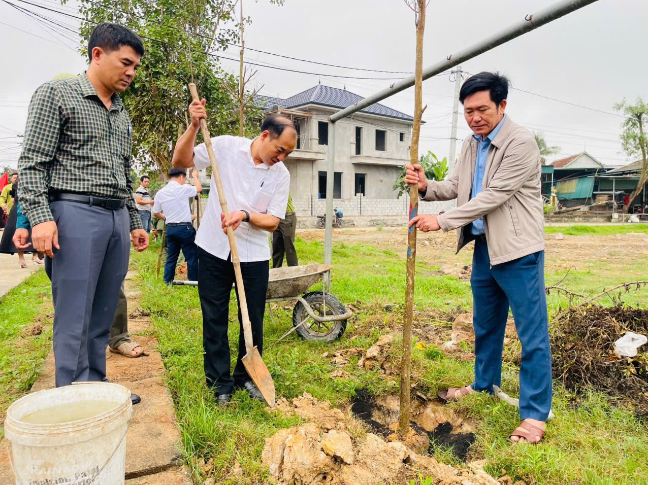 Ngay sau lễ phát động, cán bộ, công chức, lực lượng vũ trang và toàn bà con Nhân dân ra quân trồng cây dọc tuyến đường khu dân cư thôn Trường Tiến đến Quốc lộ 281.
