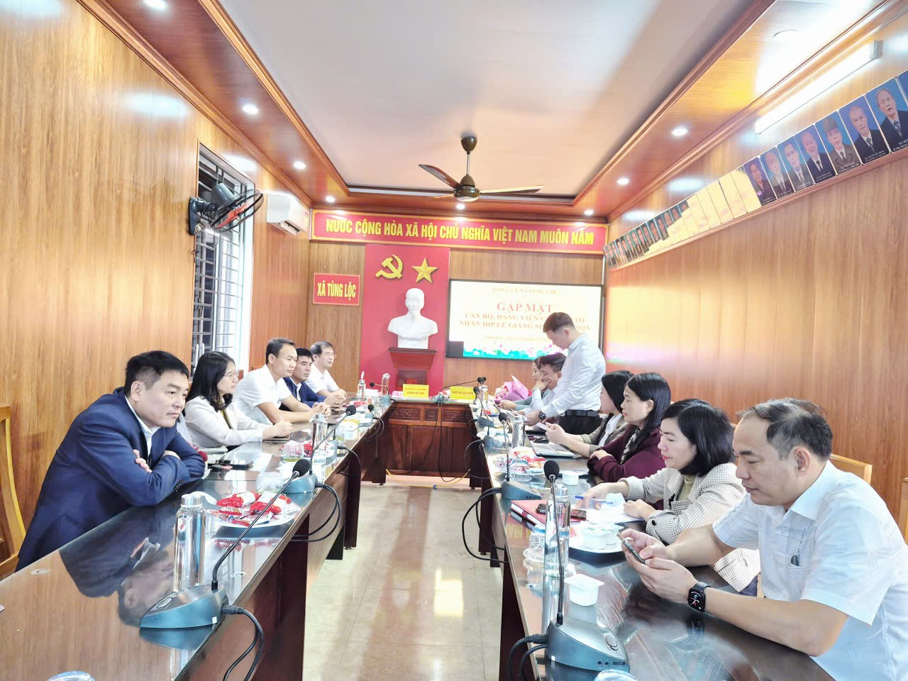 Nhân dịp lễ Giáng sinh năm 2025, sáng nay 22/12, Ban Thường vụ Đảng ủy xã Tùng Lộc tổ chức gặp mặt, tặng hoa chúc mừng 3 cán bộ, công chức là giáo dân hiện đang công tác tại UBND xã và Trường THCS Đặng Dung.