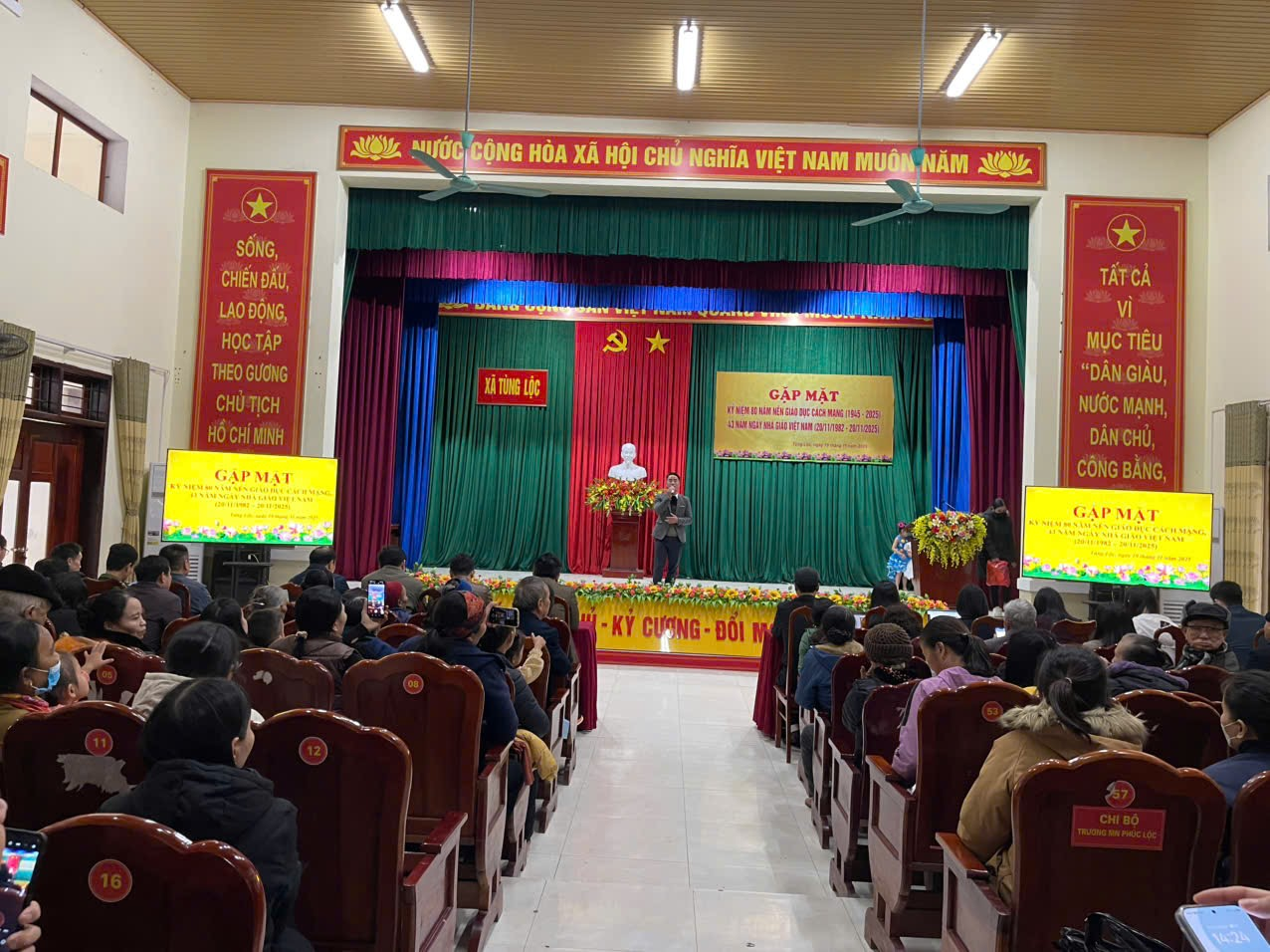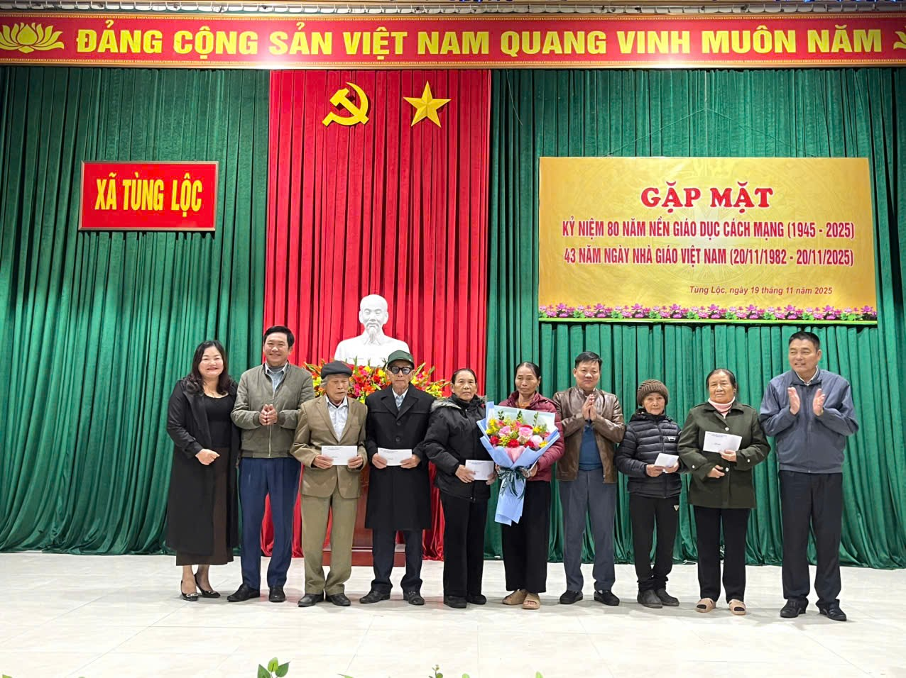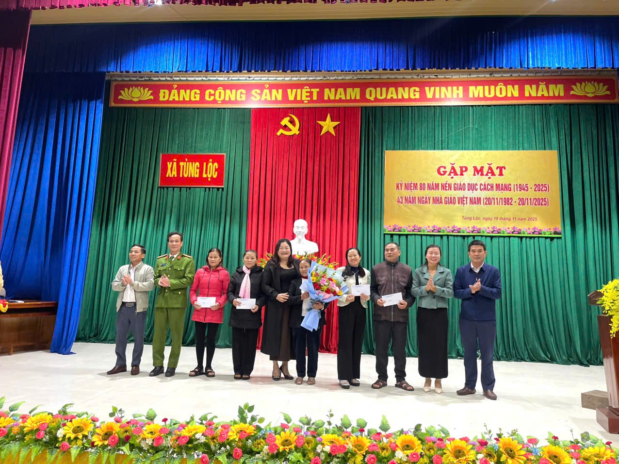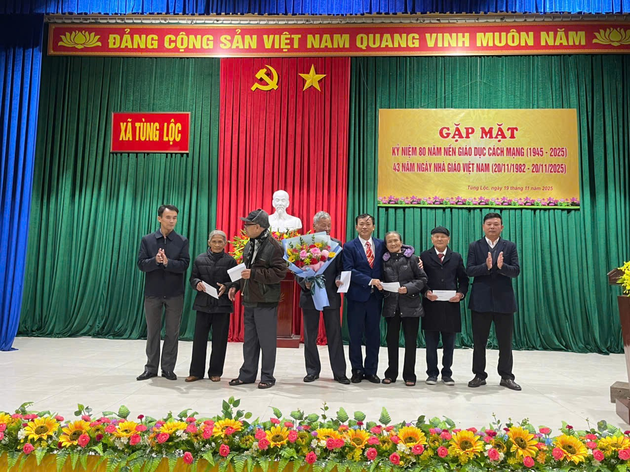 Chiều ngày 19/11/2025, tại Hội trường UBND xã, Đảng ủy – HĐND – UBND – Ủy ban MTTQ xã Tùng Lộc long trọng tổ chức Lễ gặp mặt nhân kỷ niệm 80 năm nền giáo dục cách mạng Việt Nam và 43 năm Ngày Nhà giáo Việt Nam (20/11/1982 – 20/11/2025).
