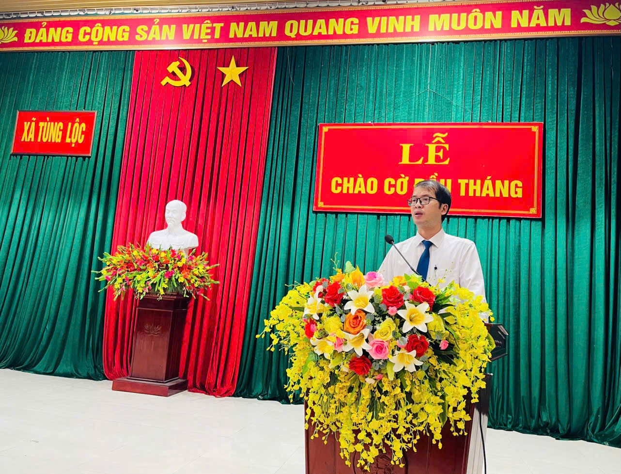 Sau nghi thức chào cờ, hát Quốc ca trang nghiêm,đồng chí Hoàng Bá Anh, Bí thư Đảng ủy - Chủ tịch HĐND xã ghi nhận những kết quả Đảng bộ và Nhân dân xã Tùng Lộc đạt được trong năm 2025 trên các lĩnh vực. Năm 2026 là năm đầu tiên triển khai thực hiện Nghị quyết Đại hội Đảng các cấp. Đồng chí Bí thư Đảng ủy đề nghị: UBND xã, các tổ chức đoàn thể, các Chi bộ tập trung thực hiện tốt 5 nhóm nhiệm vụ trọng tâm sau: